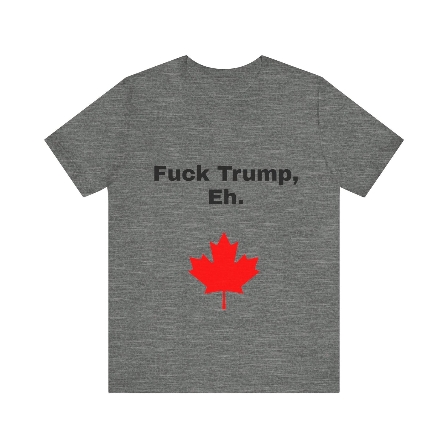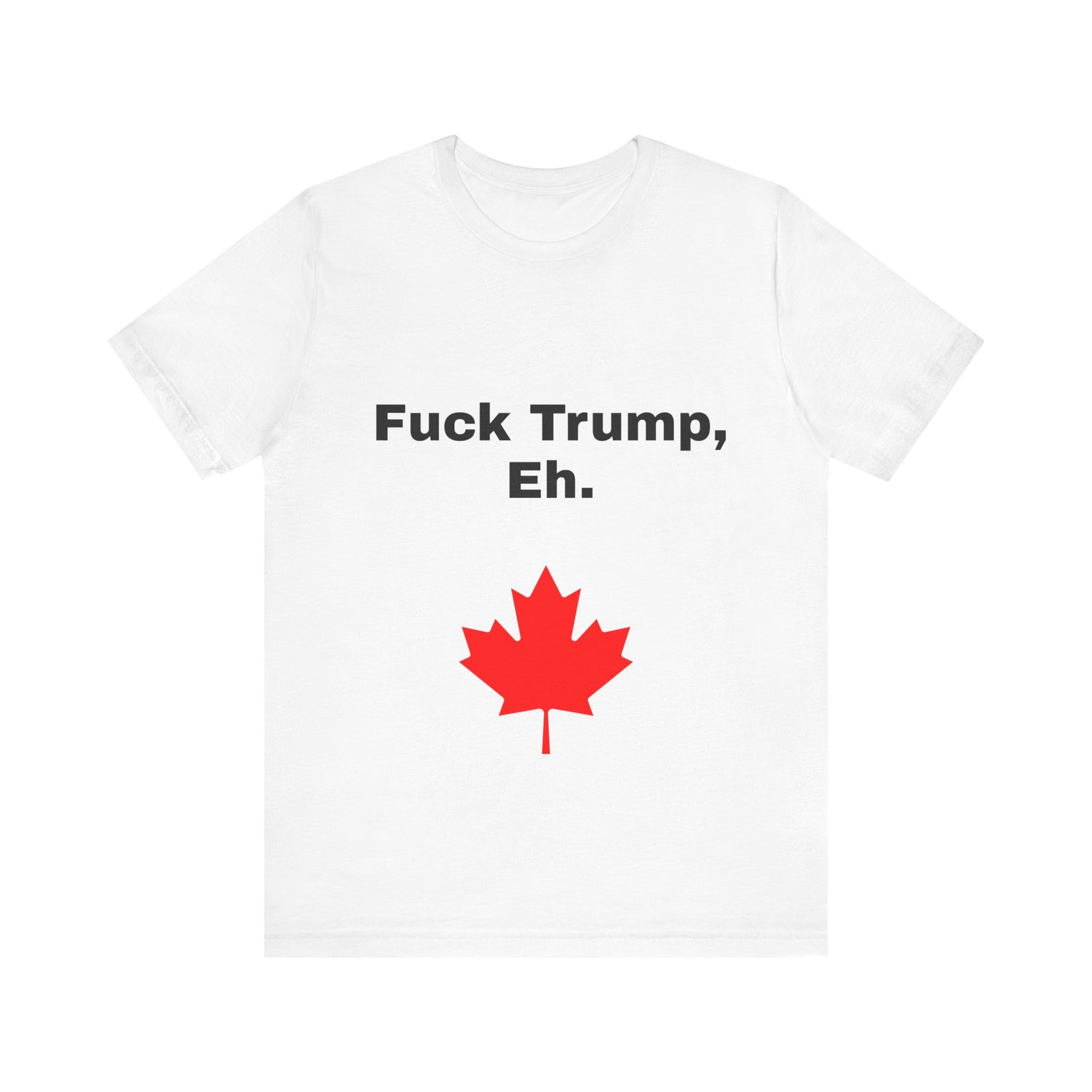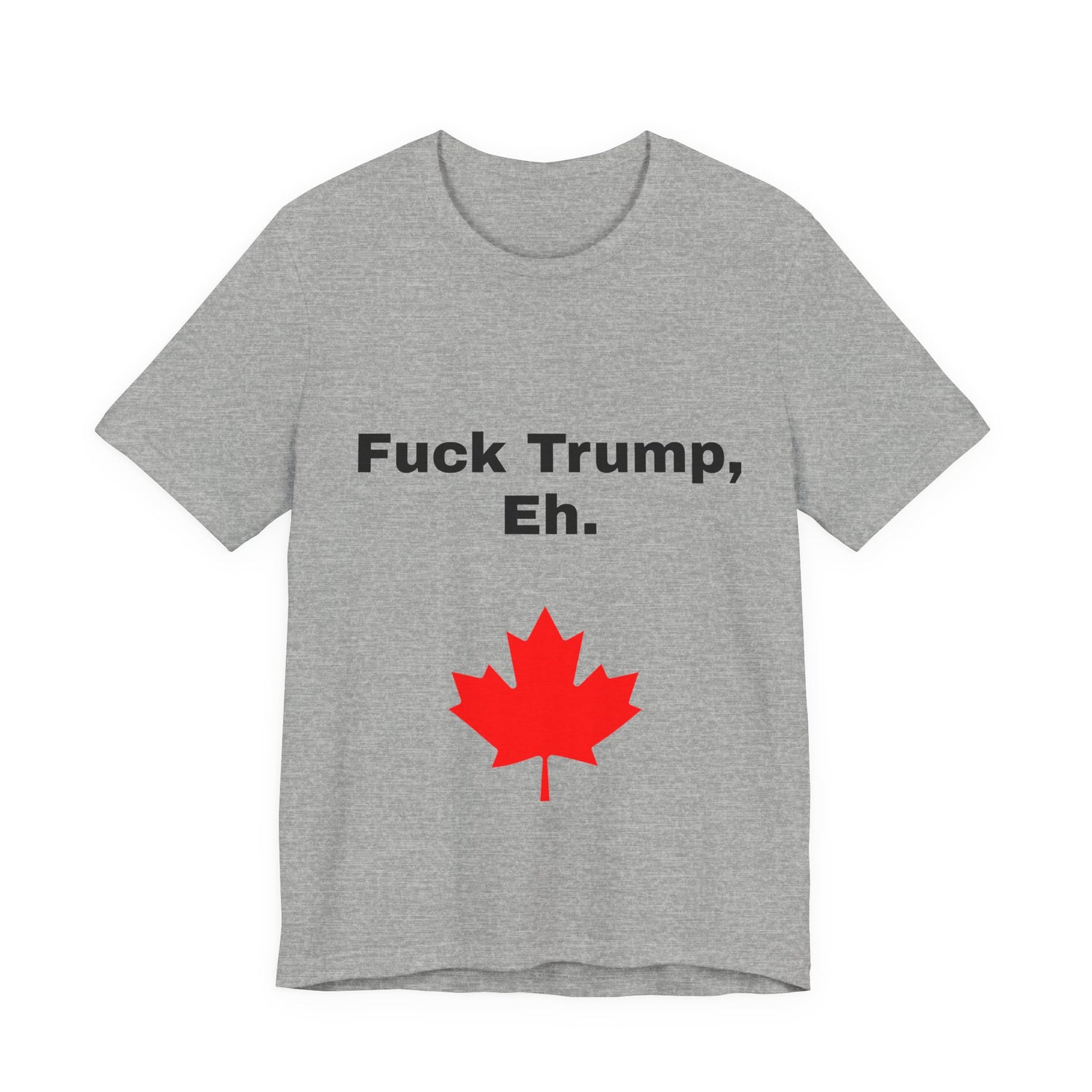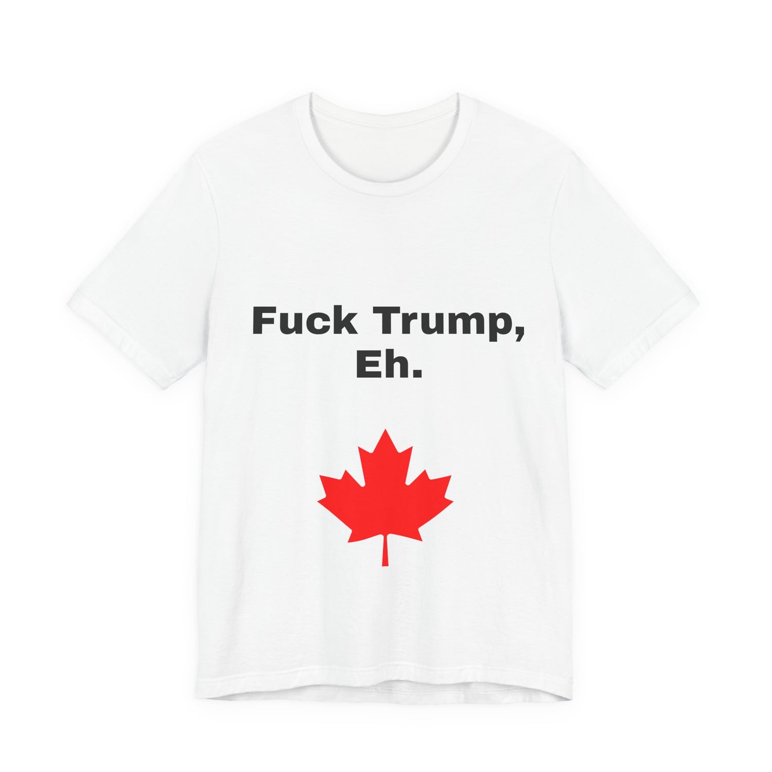 Show off your Canadian spirit with this cheeky "Fuck Trump, Eh" T-shirt! Perfect for those who aren't shy about expressing their views, this shirt combines rebellious spirit with a touch of Canadian charm. Whether you're protesting, making a statement, or just having a laugh, this shirt is the perfect conversation starter. Made from soft, breathable fabric, it's as comfortable as it is bold. Wear it proudly and let everyone know where you stand.